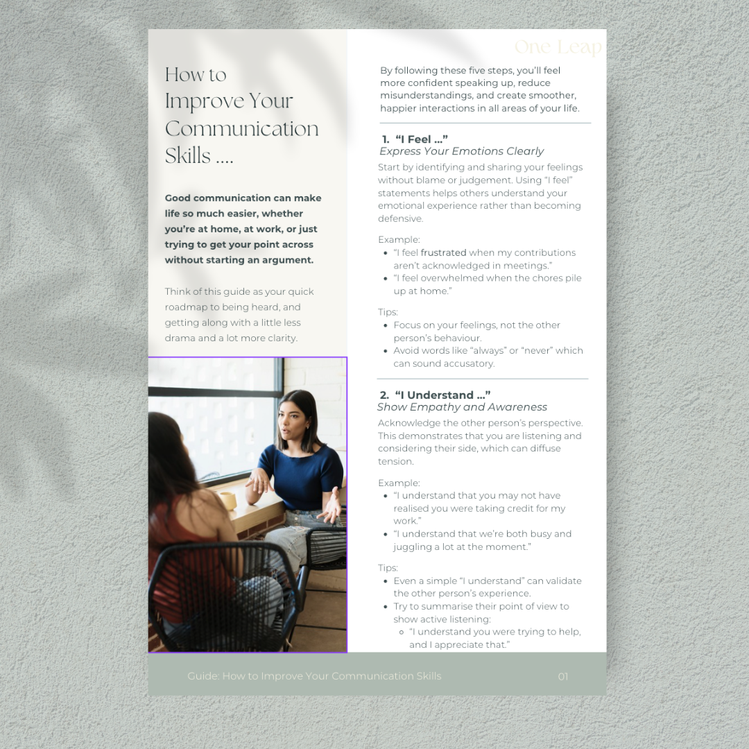 Use these 5 simple steps to help you feel more confident in speaking up. It’s your roadmap to being heard, getting along with others better and learning to communicate assertively.